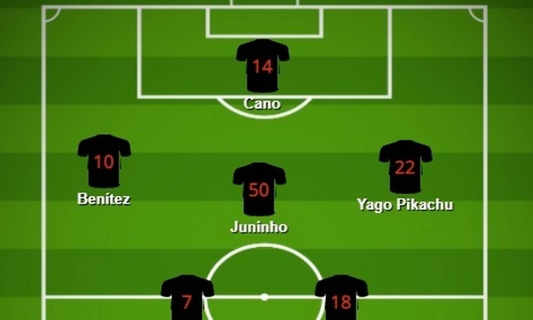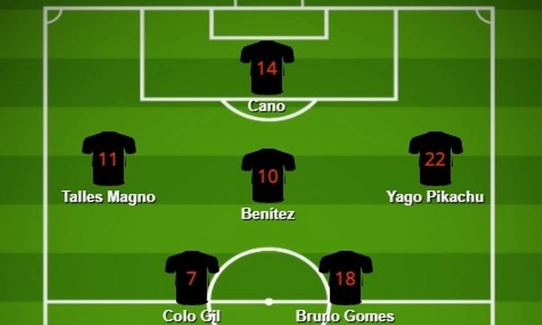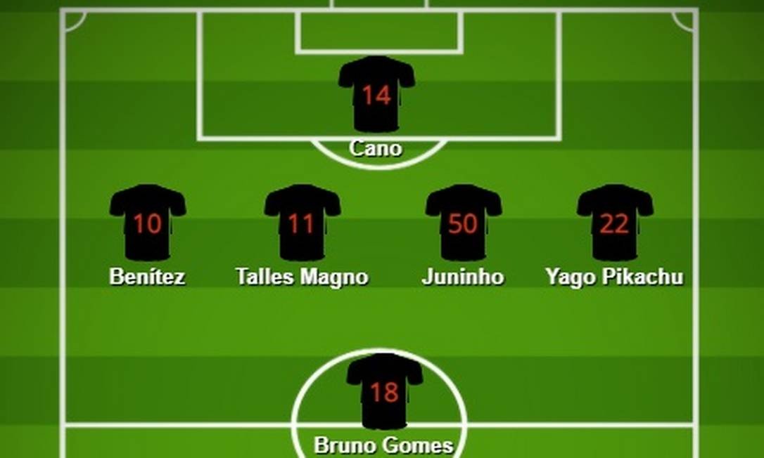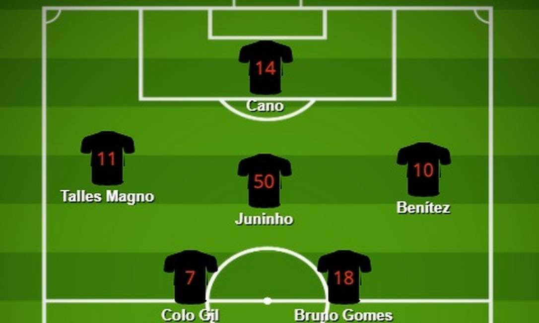 É uma região do campo que Benítez domina bem. No Brasileiro, jogou por seis vezes como o meia de ligação mais clássico, um legítimo camisa 10. Nela, pode distribuir o jogo para todas as direções. Acionar Talles Magno e Yago Pikachu com passes em diagonal e tentar um passe aprofundado para Cano. Barraria Juninho, garoto que Luxemburgo tem elogiado pelo drible e vigor físico para chegar ao ataque.