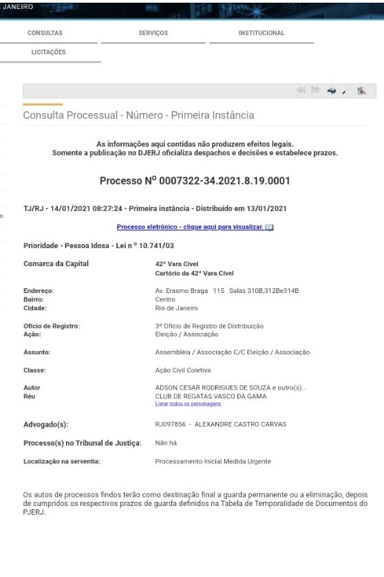 Ação coletiva de 40 sócios com pedido de anulação da eleição do dia 14 é registrado na justiça do Rio, pedido de permanência de Alexandre Campello até decisão também é feito. Aguardemos as cenas dos próximos capítulos. Até quando?