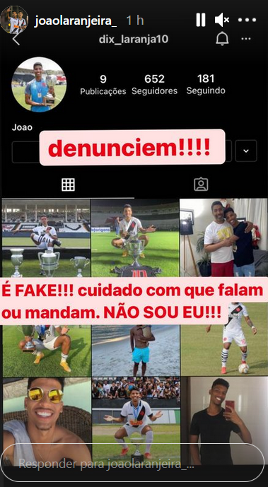 Juniores: Laranjeira alerta para perfil fake se passando por ele no Instagram