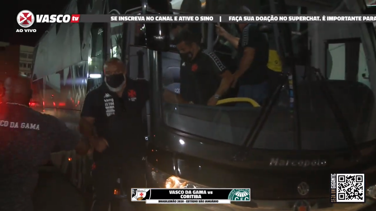 Elenco vascaíno acaba de chegar em São Januário para o confronto diante do Coritiba: