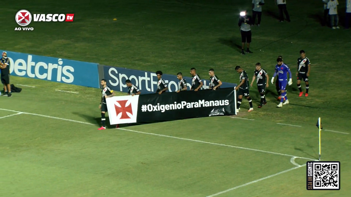 20:51 - Vasco entrará em campo com uma faixa com mensagem de solidariedade ao povo de Manaus