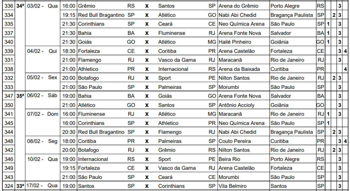 CBF detalha rodadas 34 e 35 do Brasileiro; Urubu x Vasco será no dia 04/02, 5ª-feira, às 21h, no Maracanã