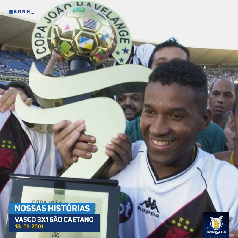 Há 20 anos, o povão vibrou! Com Juninho Pernambucano, Jorginho Paulista e Romário! A vitória por 3 a 1 sobre o São Caetano, no @Maracana, deu o título da Copa João Havelange ao @VascoDaGama, em 18 de janeiro de 2001. Festa da imensa torcida, muito feliz! É tetra, Vascão... ?