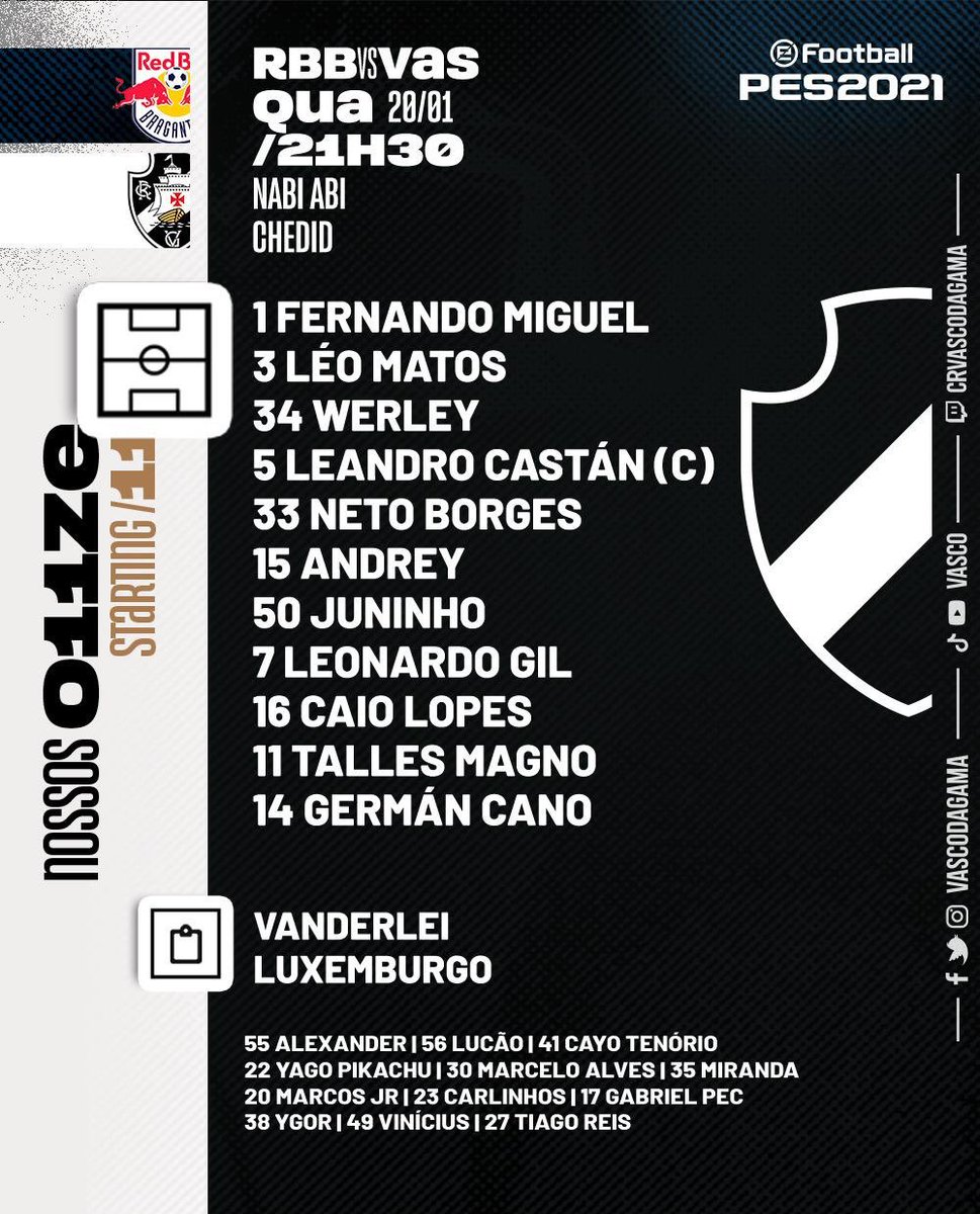 16/01/21 - Vasco destaca Luxemburgo, Yago Pikachu, Talles Magno e Leonardo Gil em postagem sobre o jogo deste sábado