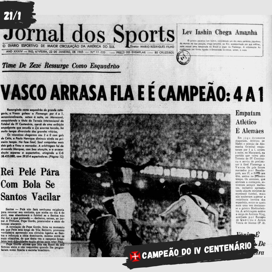 Há 56 anos, Vasco se sagrava campeão do Torneio VI Centenário com goleada de 4 a 1 sobre o Urubu