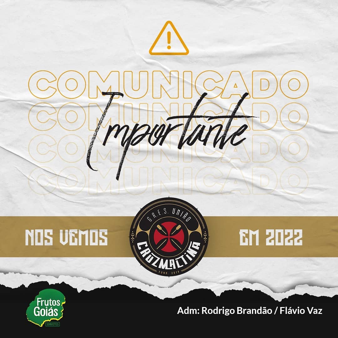 União Cruzmaltina divulga nota sobre o cancelamento do Carnaval 2021: 'Nos vemos em 2022'