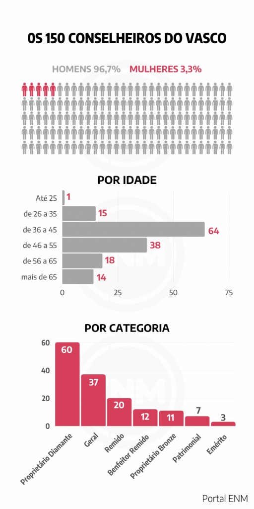 Veja distribuição dos 150 novos conselheiros do Vasco por gênero, idade e categoria