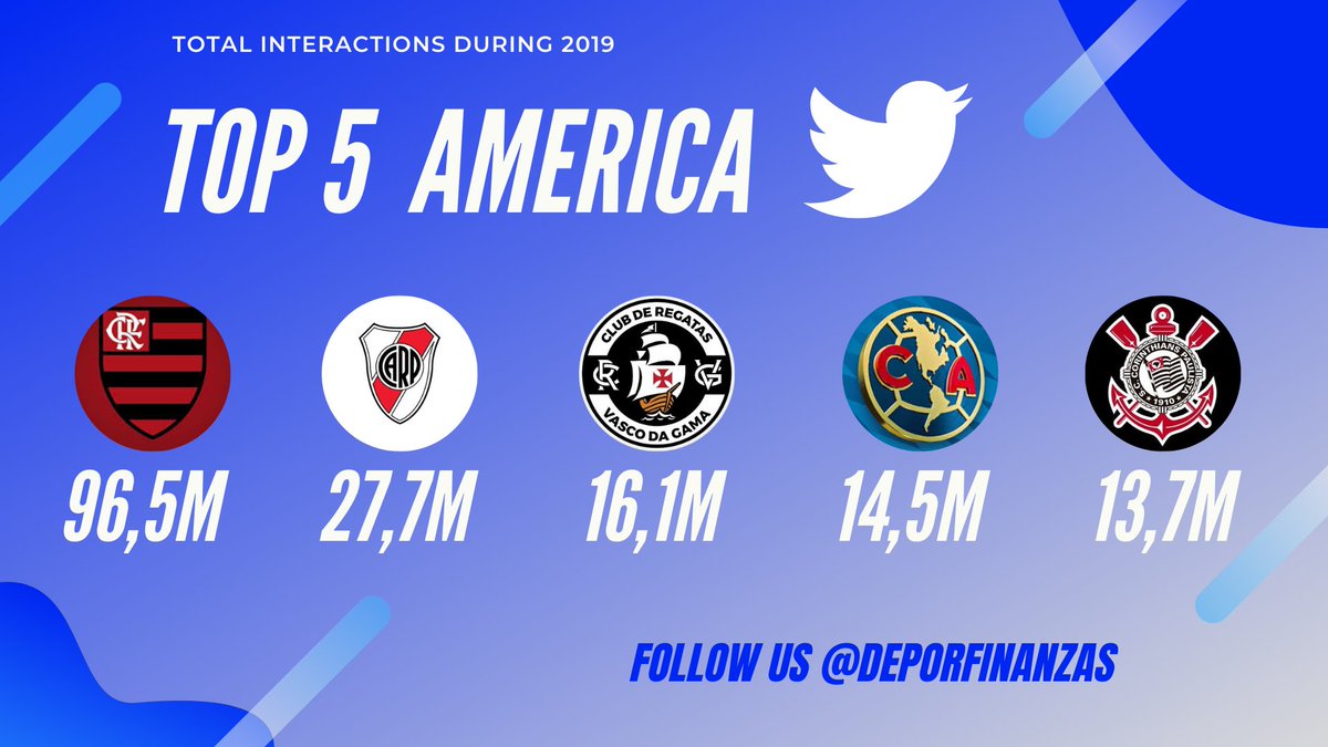 ?⚽ ¡Los 5 clubes de América con más interacciones en #twitter en 2019 y 2020!???