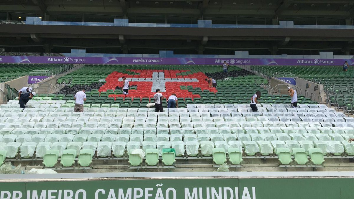 Torcedores preparam mosaico da Cruz de Malta no Allianz Parque para o jogo desta 3ª-feira; veja fotos