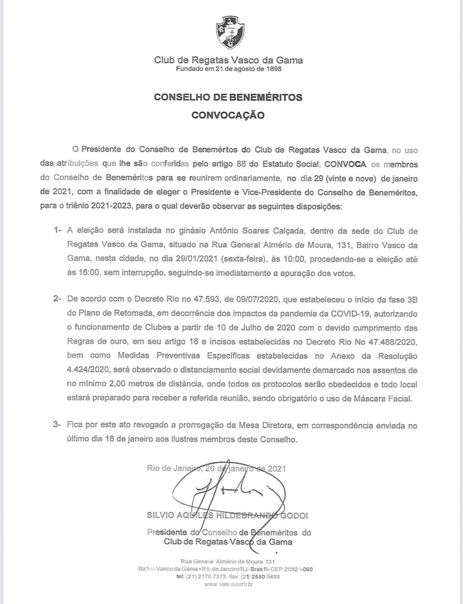 Presidente do Conselho de Beneméritos, Silvio Godoi revoga prorrogação do seu mandato e convoca eleições para esta 6ª-feira