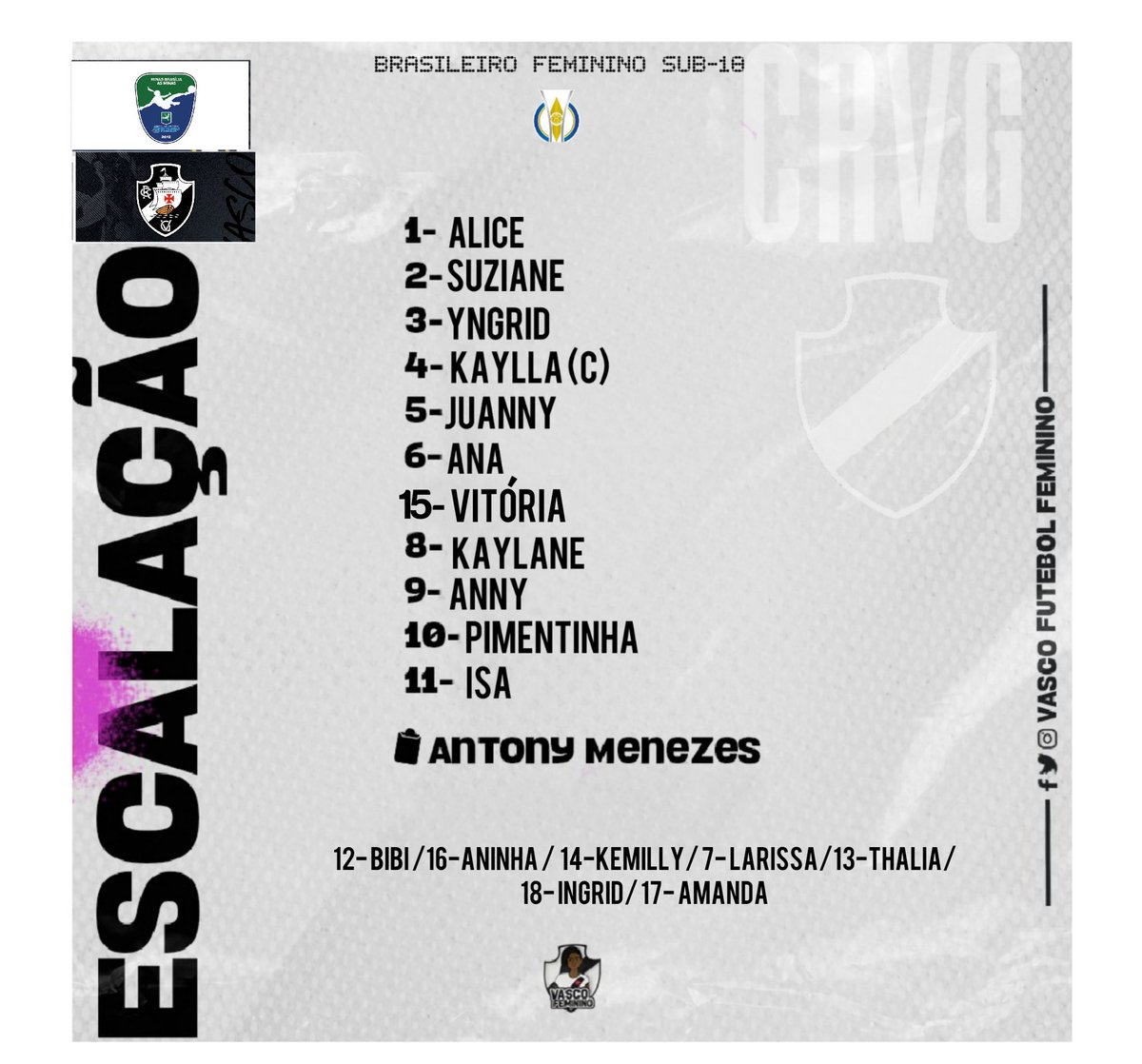 Feminino Base: Veja a escalação do Vasco para o jogo contra o Minas Brasília