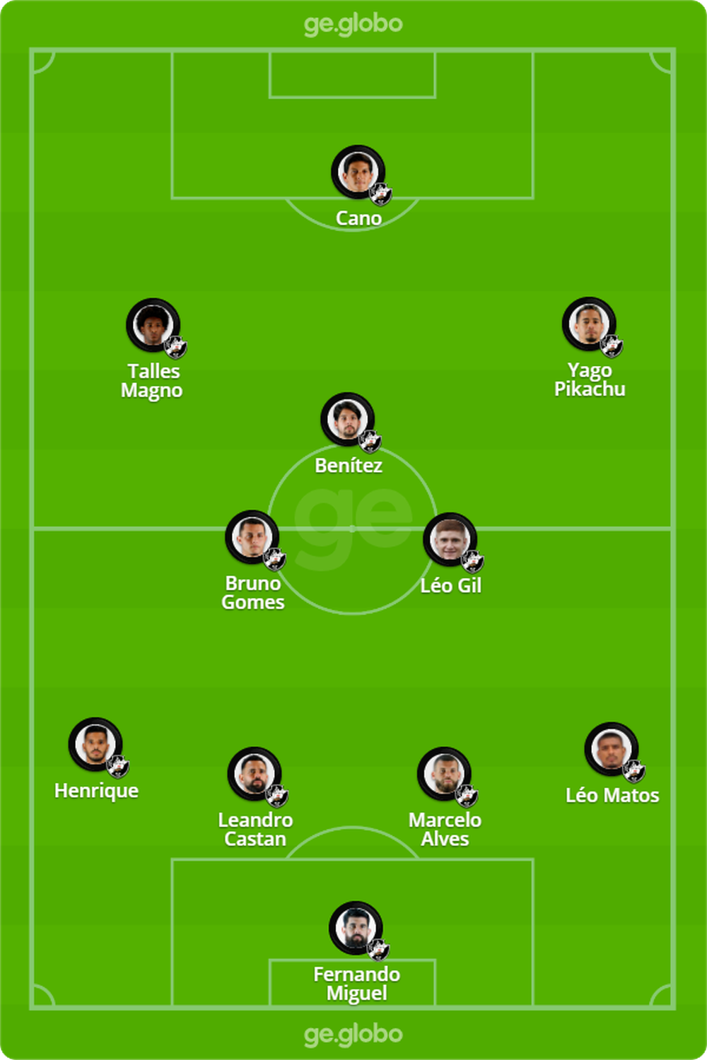 Provável time: Fernando Miguel; Léo Matos, Marcelo Alves (Ricardo Graça), Leandro Castan e Henrique; Bruno Gomes, Leonardo Gil e Benítez; Yago Pikachu, Cano e Talles.