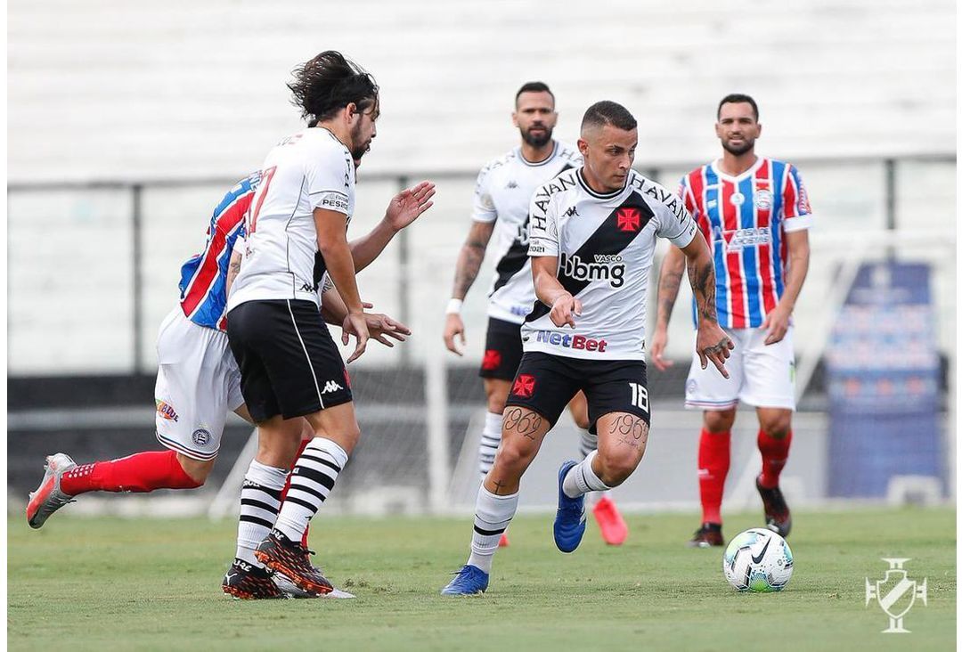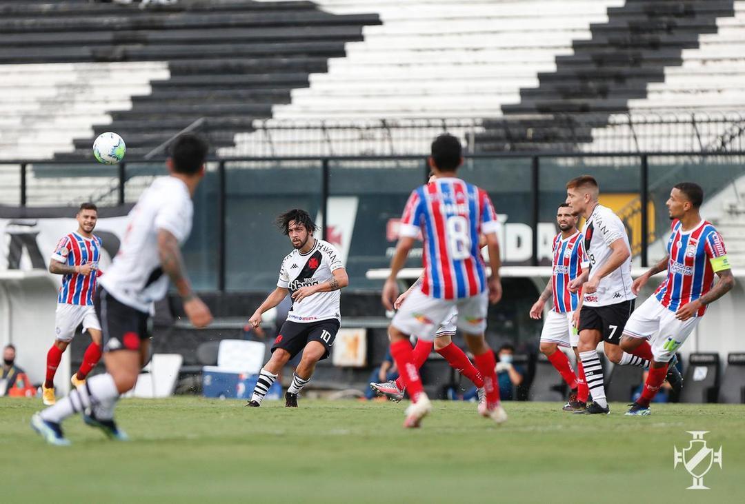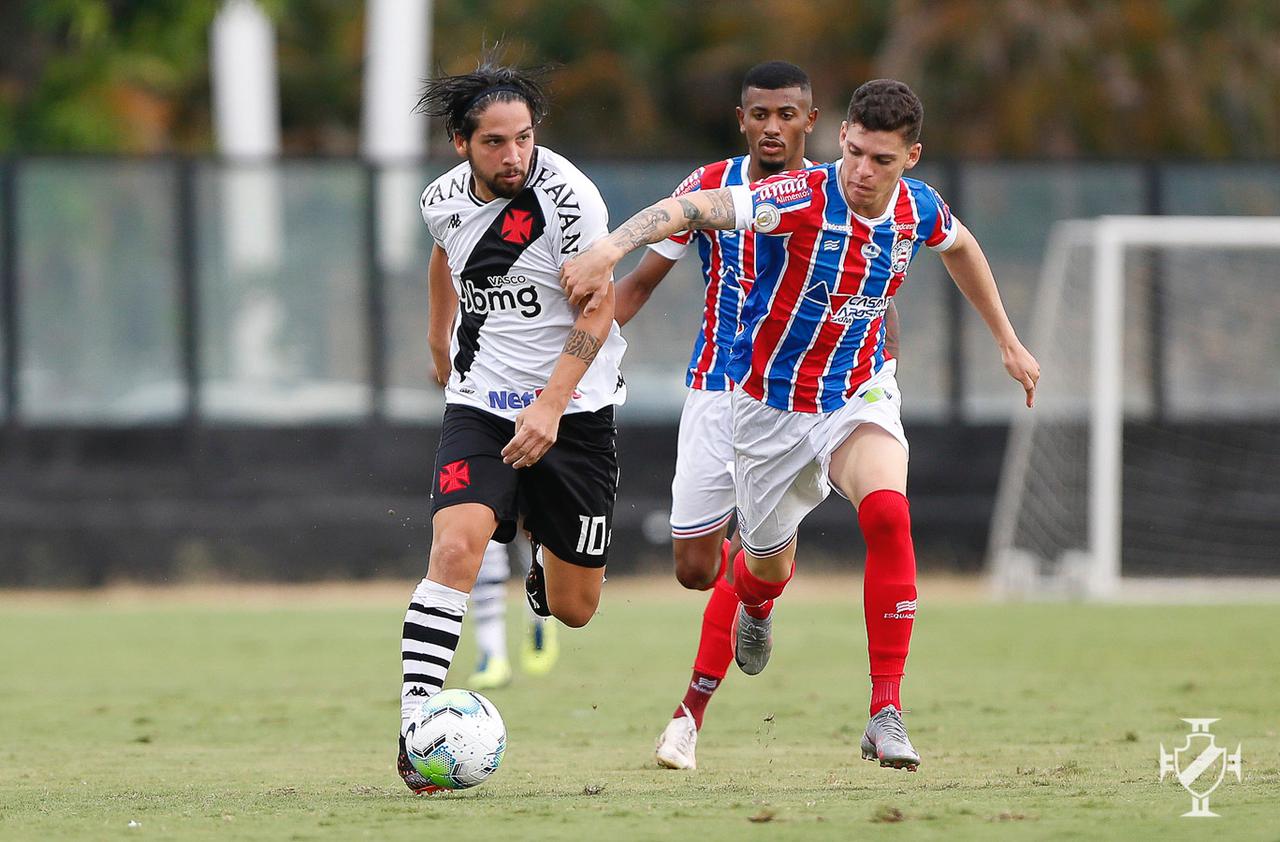 O Vasco começou a partida com mais posse de bola e em busca do ataque. Só que o Bahia ficou recuado e impediu as boas chegadas dos donos da casa.