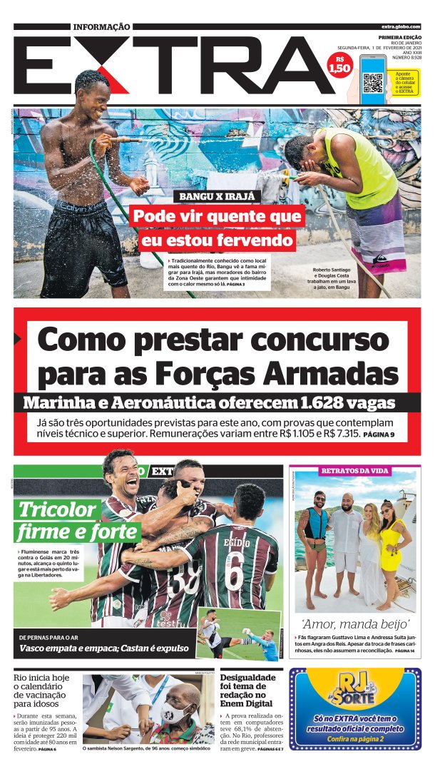 Veja as capas dos jornais após Vasco 0 x 0 Bahia