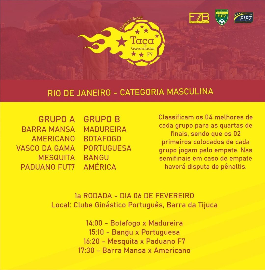 Confira os grupos da categoria masculina que inicia no próximo sábado no Rio de Janeiro.