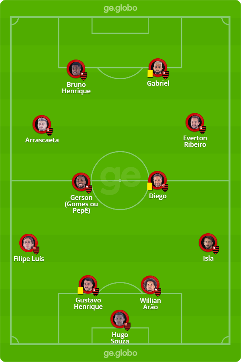 Escalação provável: Hugo Souza, Isla, Arão, Gustavo Henrique e Filipe Luís; Diego, Gerson (Pepê ou Gomes), Everton Ribeiro, Arrascaeta, Bruno Henrique e Gabigol.