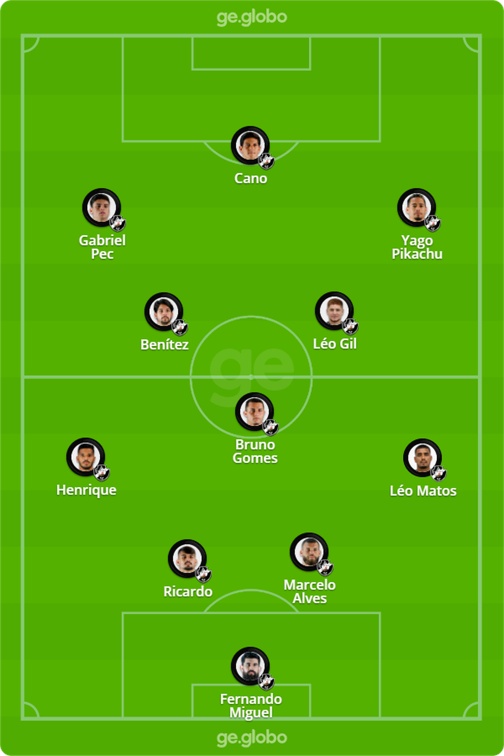 Escalação provável: Fernando Miguel, Léo Matos, Marcelo Alves, Ricardo Graça, Henrique; Bruno Gomes, Léo Gil, Benítez, Pikachu, Pec e Cano.