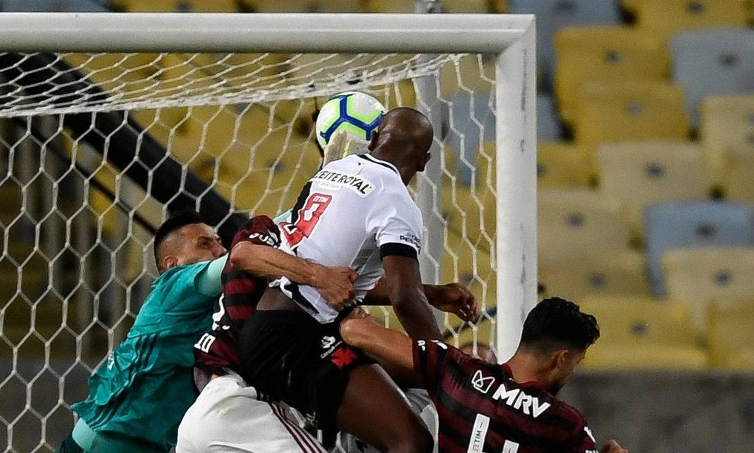 Só que o Vasco não desistiu e usou suas armas até o fim. Já no abafa, nos acréscimos da partida, contou com a falha dupla de Rodrigo Caio e o goleiro Diego Alves. O primeiro não ganhou a disputa de cabeça com Ribamar; o segundo saiu errado e teve de buscar a bola no fundo da rede.
