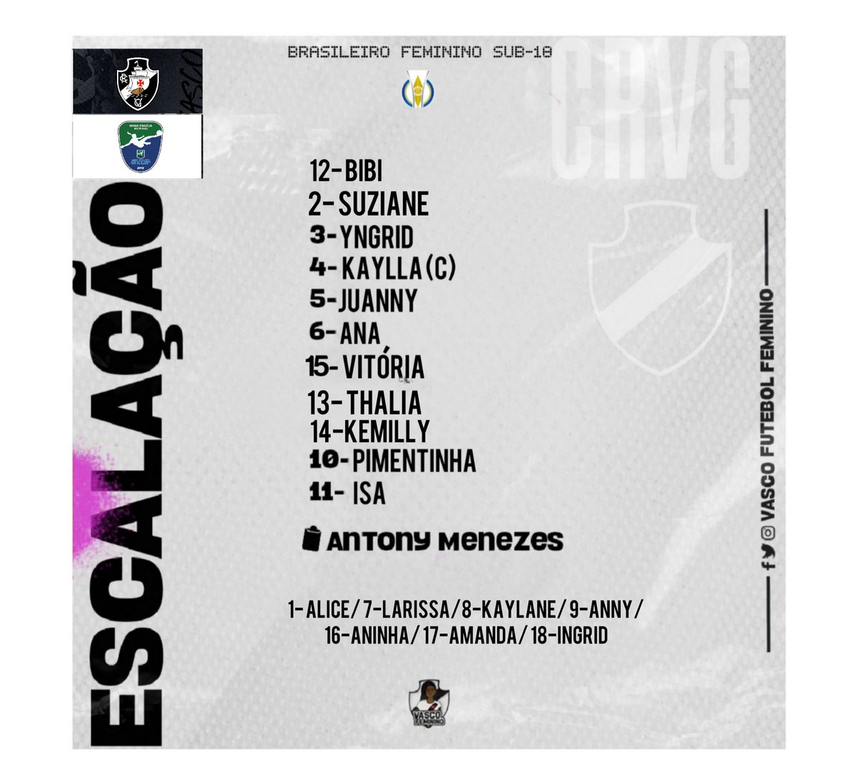 Feminino Base: Veja a escalação do Vasco para o jogo contra o Minas Brasília