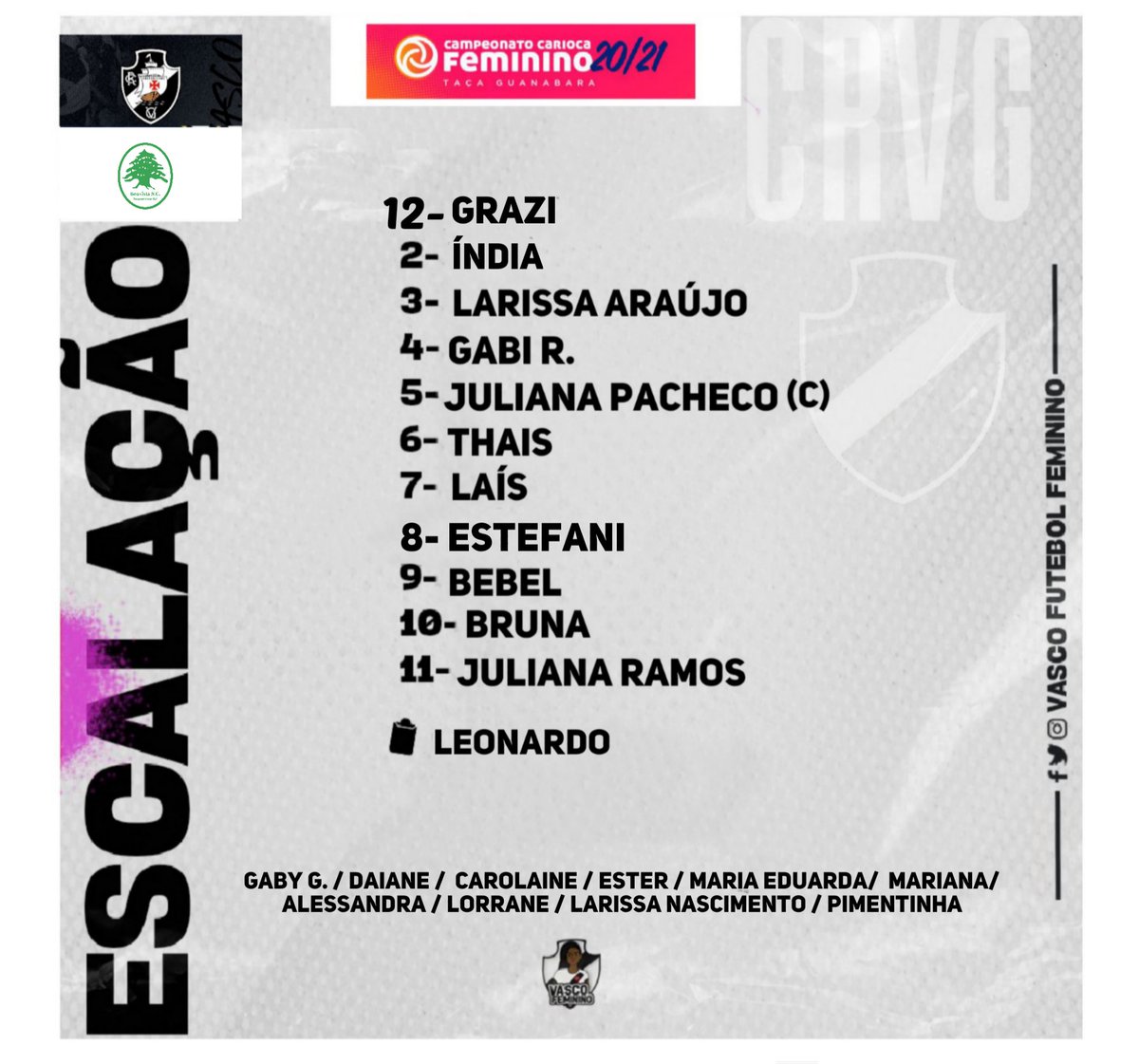 Feminino: Veja a escalação do Vasco para o jogo contra o Boavista