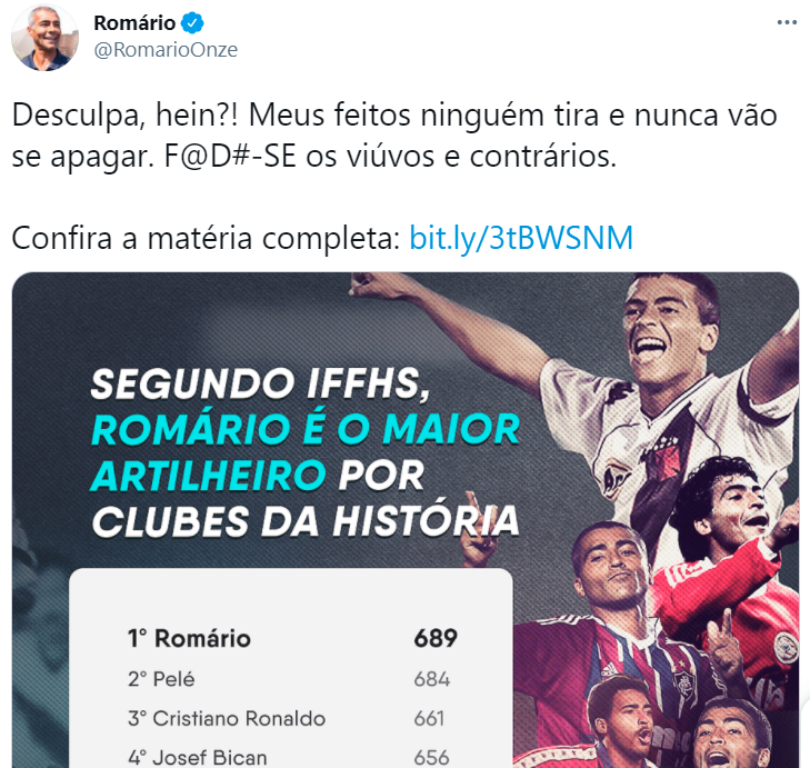 Fonte: Extra Online (texto), IFFHS (ranking), Twitter do ex-jogador Romário (imagem)