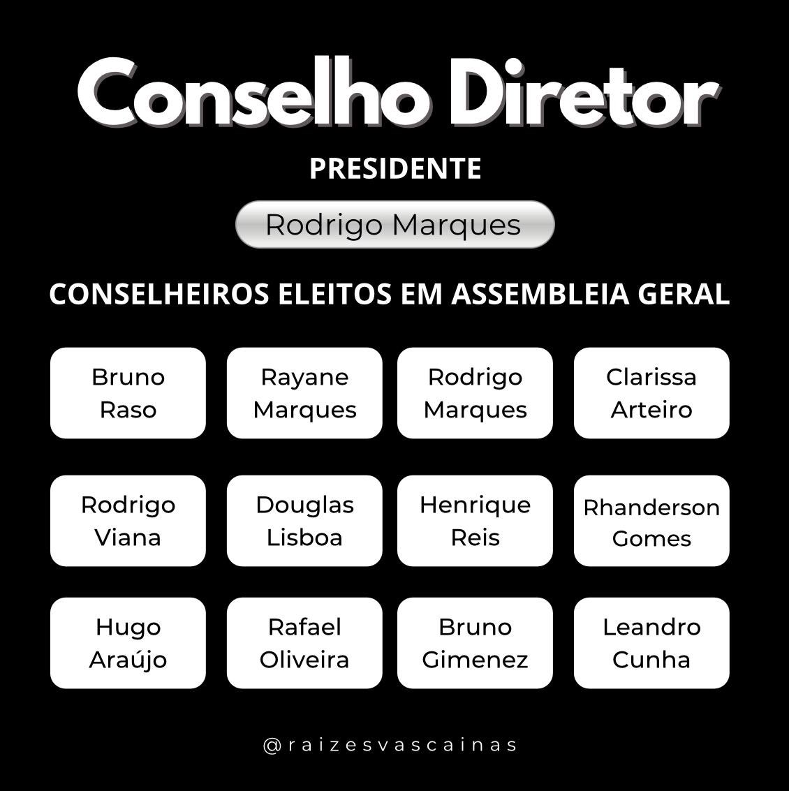 Nesta segunda-feira, o novo Conselho Diretor do Raízes Vascaínas tomou posse para o mandato dos próximos 18 meses. A escolha aconteceu de forma democrática, através de uma assembleia geral on-line, onde os membros do grupo puderam votar de maneira anônima, segura e rápida.