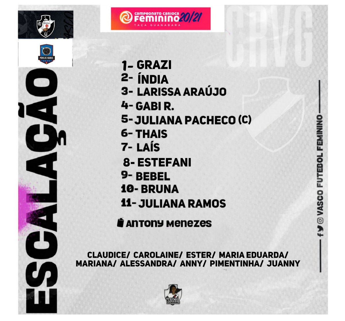 Feminino: Veja a escalação do Vasco para o jogo contra o Pérolas Negras