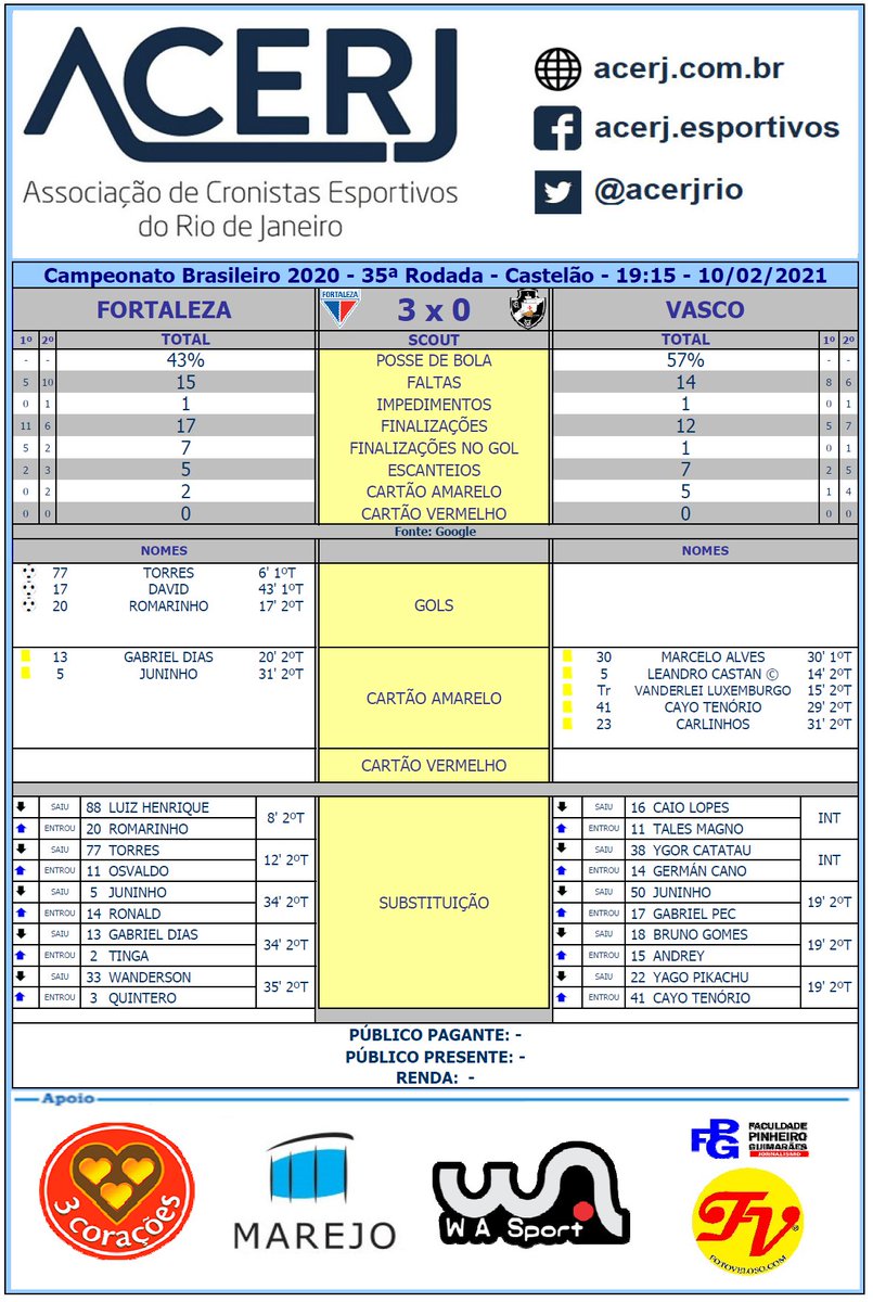 Cartões amarelos: Gabriel Dias e Juninho (Fortaleza); Marcelo Alves, Carlinhos e Leandro Castán (Vasco)