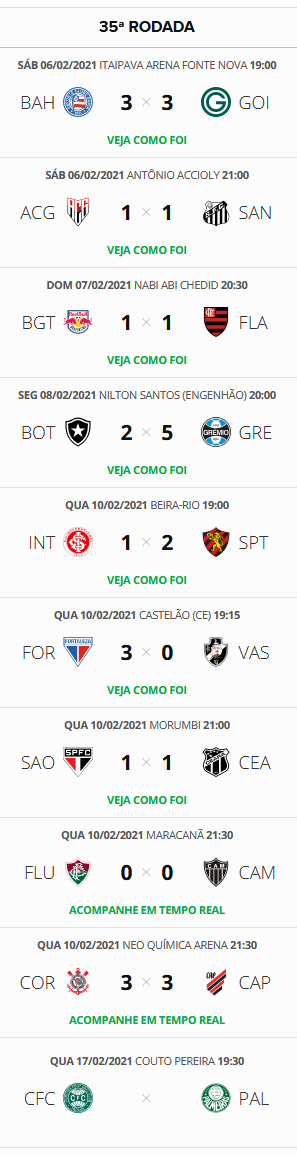 A partida que resta para completar a rodada, Coritiba x Palmeiras, no dia 17/02, não influirá na colocação do Vasco.