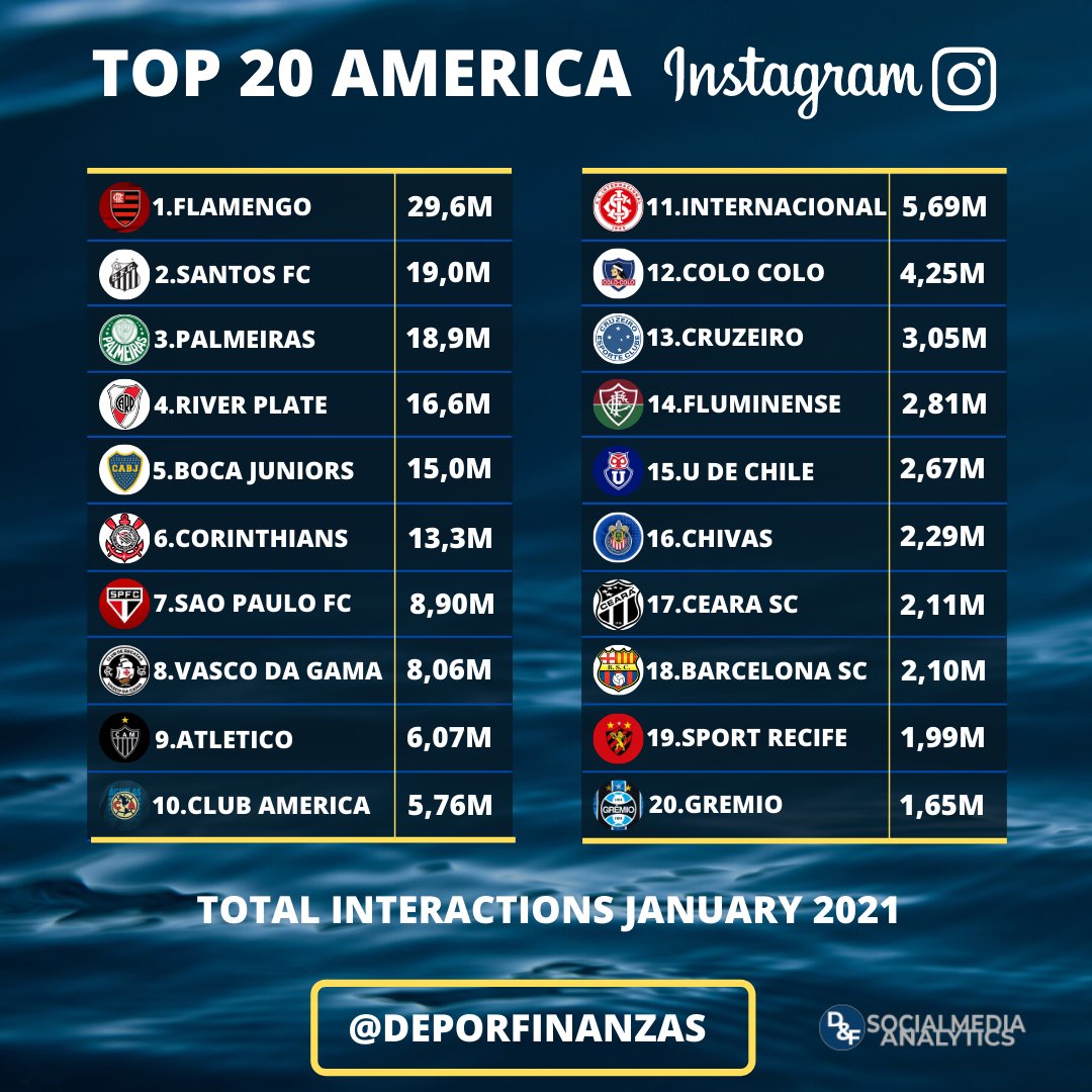 ?⚽ ¡Los 20 clubes de América con más interacciones en