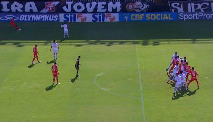 Intervalo em São Januário. Pela 36ª rodada do Brasileiro, o Vasco vai perdendo para o Internacional por 1 a 0, gol marcado por Rodrigo Dourado, de cabeça, aos 9 minutos. O jogador do Inter parecia em posição de impedimento, mas, de acordo com o Premiere - citando a CBF -, a imagem do VAR não pôde ser usada porque estava "descalibrada".