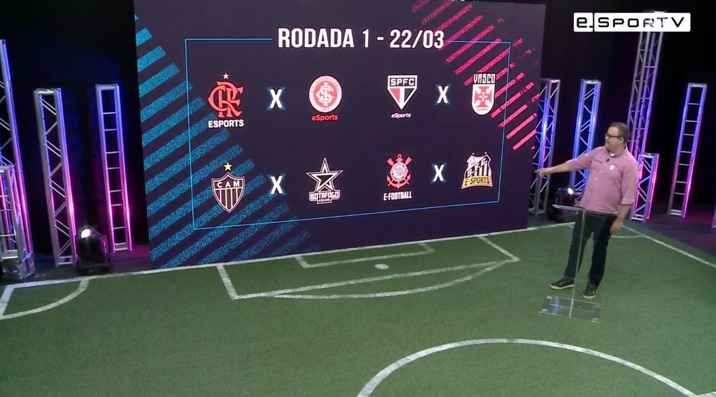 Após todas as escolhas serem feitas no Draft, Everaldo Marques anunciou ao vivo no SporTV 3 os jogos da primeira rodada do eGol Pro. No dia 22 de março, será realizada a estreia do torneio de PES 2021 com um clássico paulista e um Flamengo x Inter, que estão na briga pelo título brasileiro do futebol tradicional. Veja: