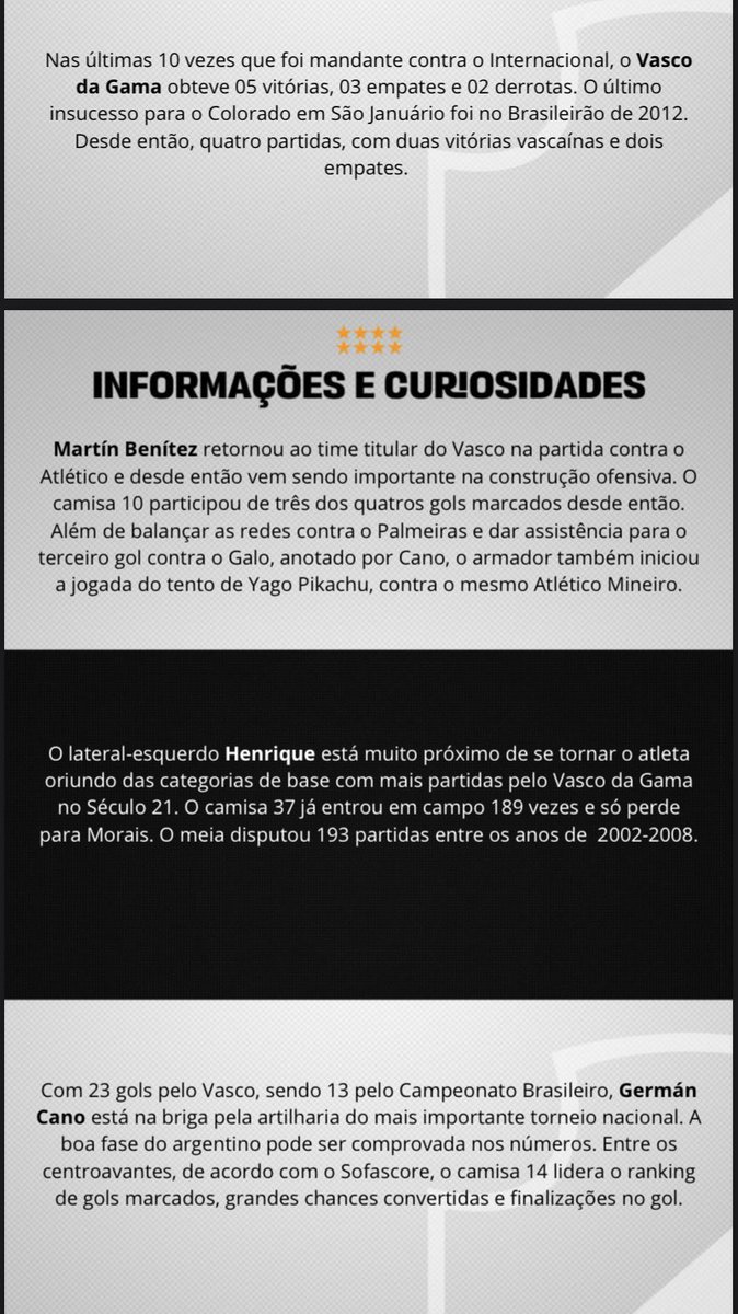 Informações disponibilizadas pelo Vasco no PressKit à imprensa: