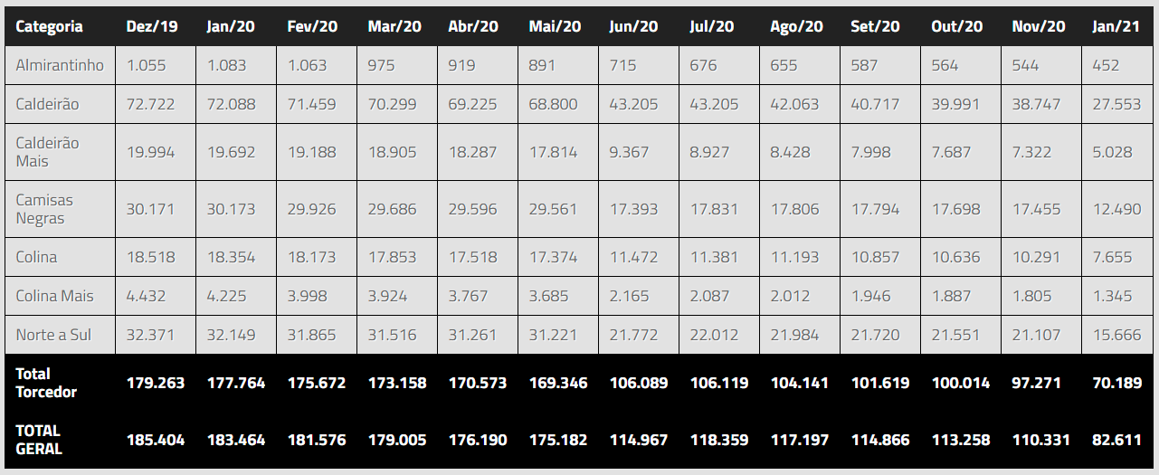 Vasco fechou janeiro com 82.611 sócios, sendo 70.189 sócios-torcedores; veja números e lista