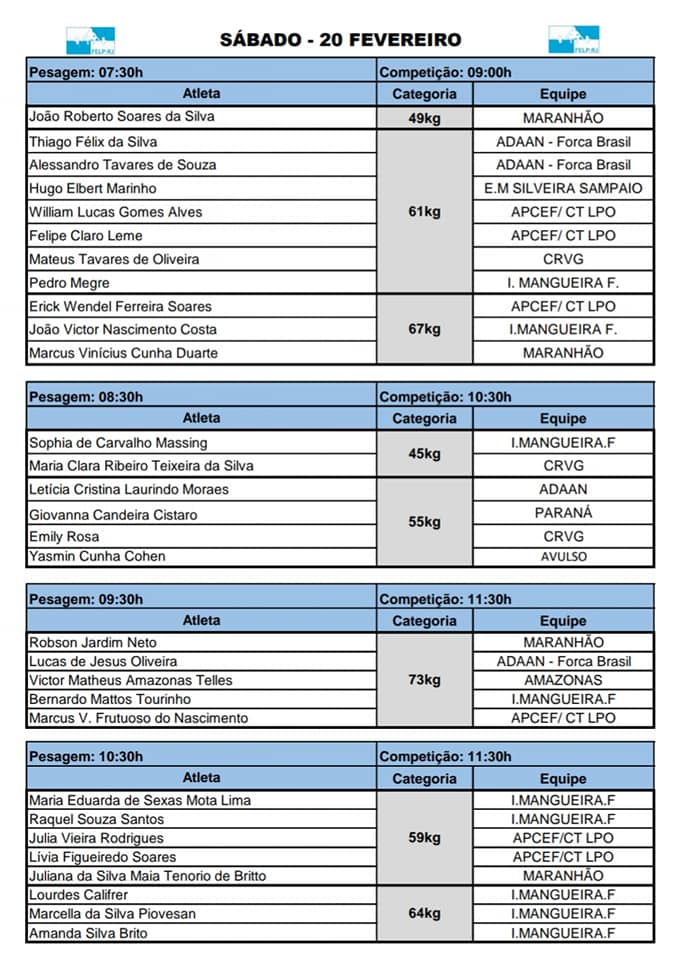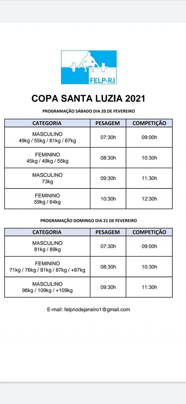 PROGRAMAÇÃO COPA SANTA LUZIA DE LEVANTAMENTO DE PESOS