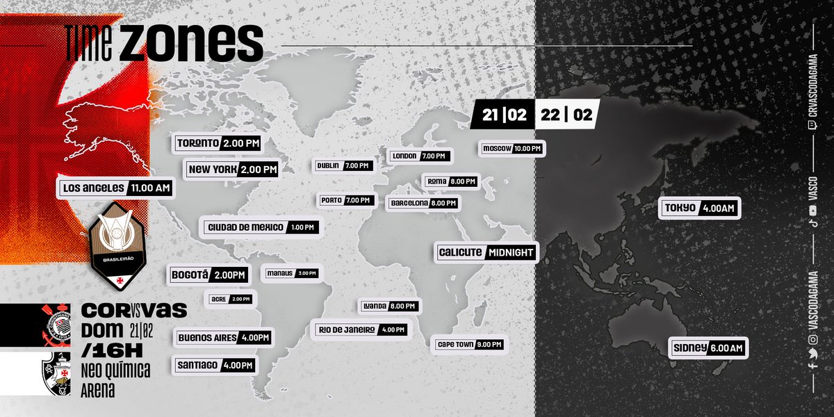 Amanhã é #DiaDeVasco! Então, para os vascaínos espalhados pelo mundo, seguem os horários da partida. ?⏰