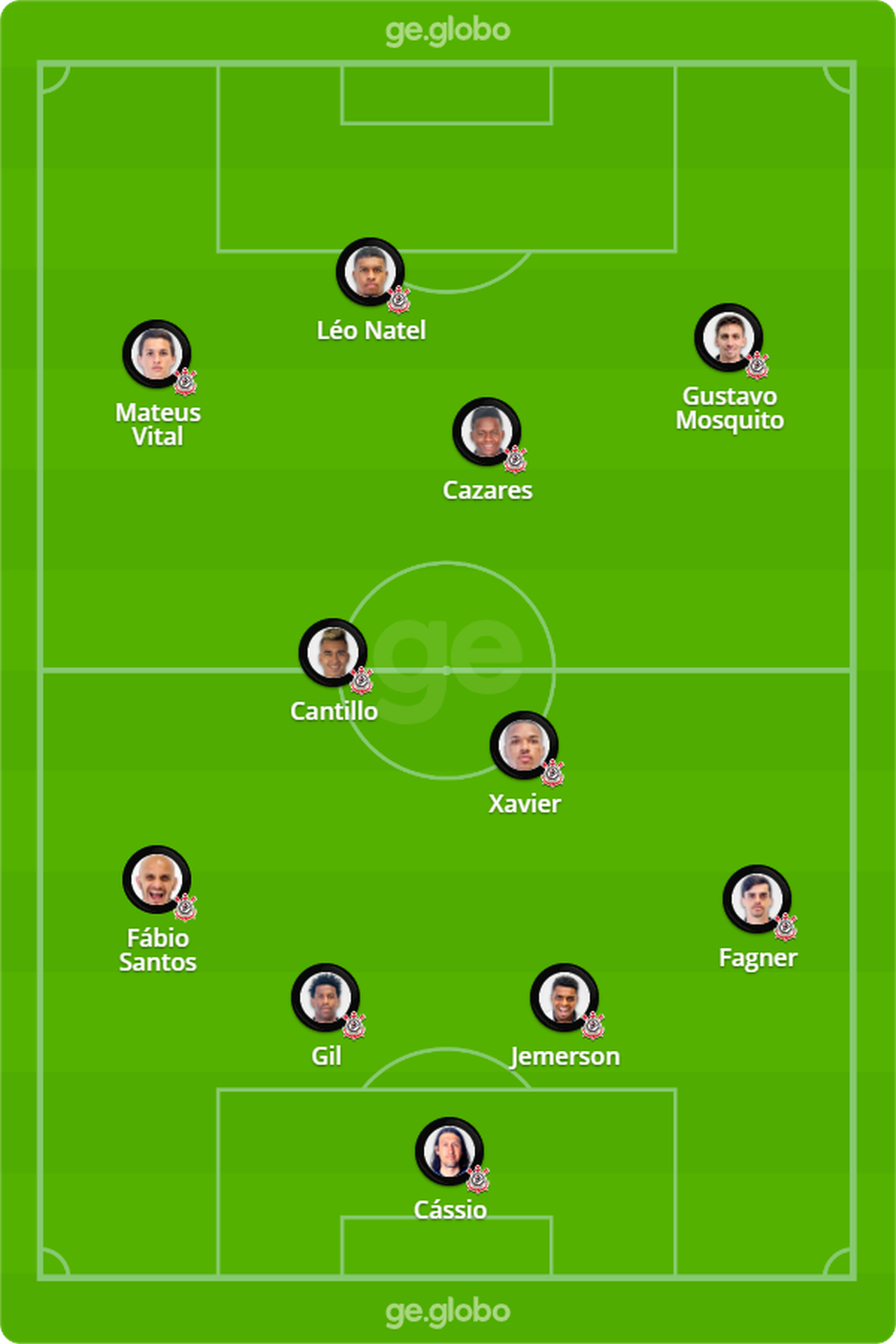 Pendurados: Cássio, Fábio Santos, Fagner, Cantillo, Walter, Camacho, Ramiro, Gabriel Pereira, Luan e Everaldo.