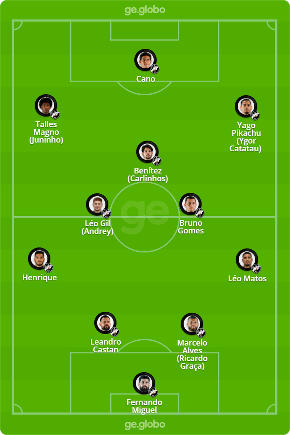 Quem está fora: Gustavo Mantuan (lesão no joelho esquerdo), Danilo Avelar (lesão no joelho direito), Ruan Oliveira (lesão no joelho esquerdo), Léo Santos (transição para o campo), Gabriel (lesão muscular na coxa esquerda).