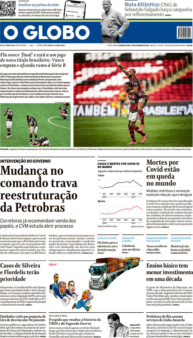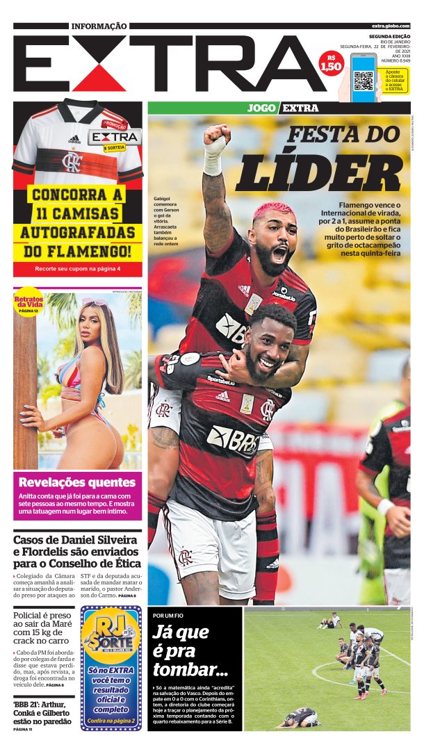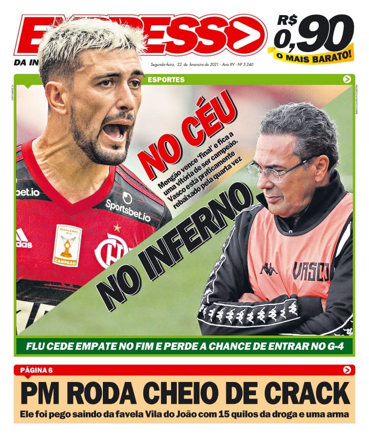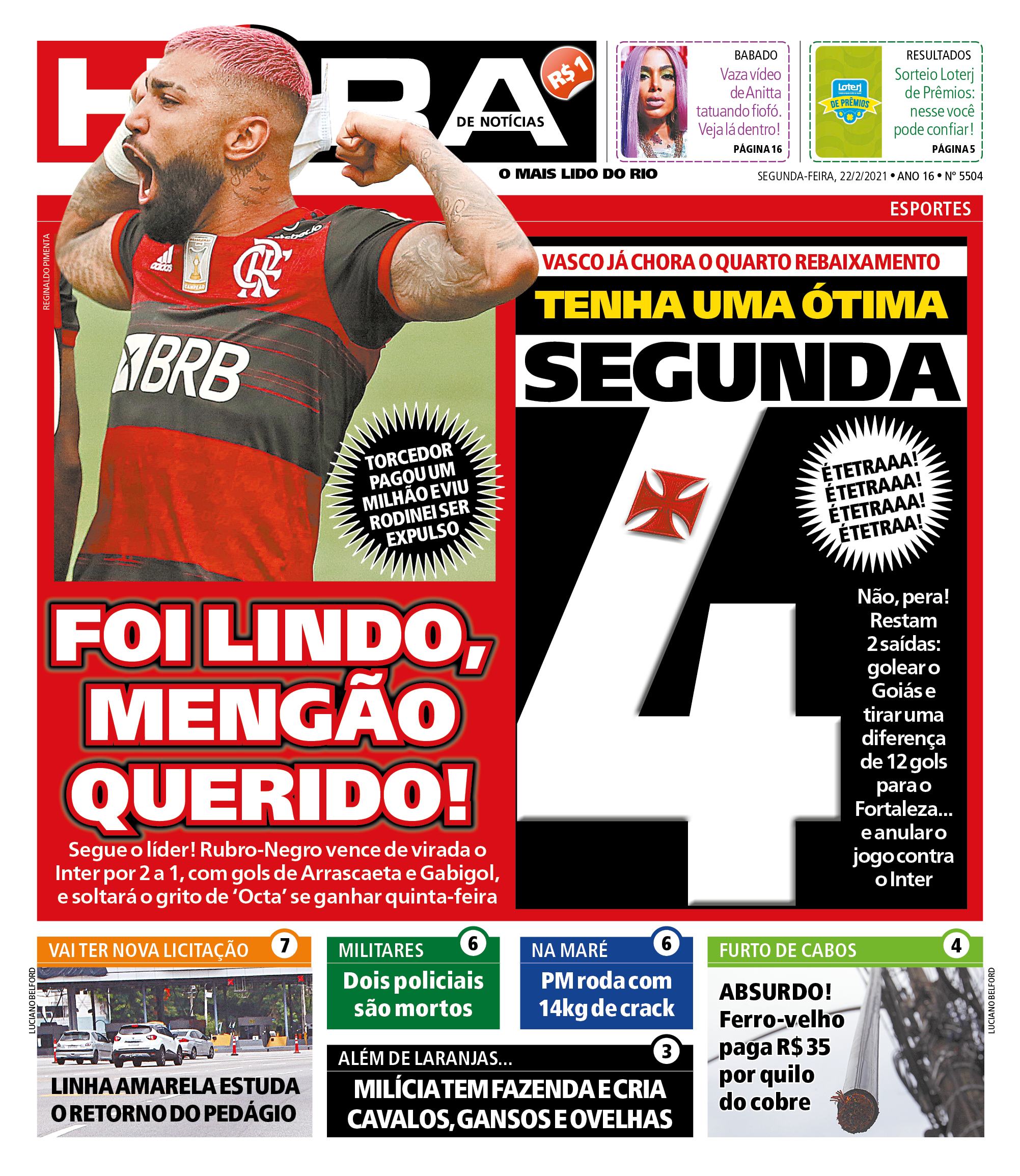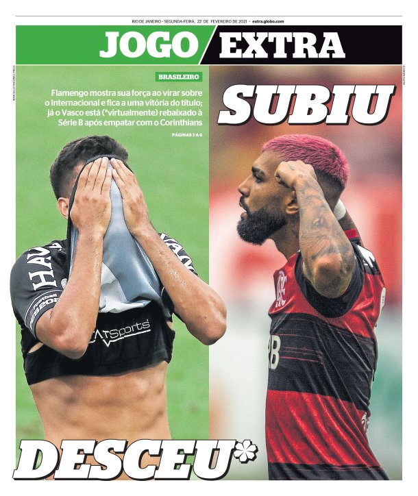 Pelo Campeonato Brasileiro, o Vasco empatou com o Corinthians por 0 a 0 em São Paulo no último domingo, resultado que o deixou virtualmente rebaixado para a Série B. Veja as capas dos jornais.