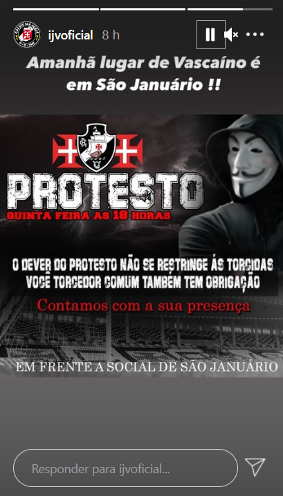 Ira Jovem compartilha convocação para protesto marcado para esta 5ª em São Januário