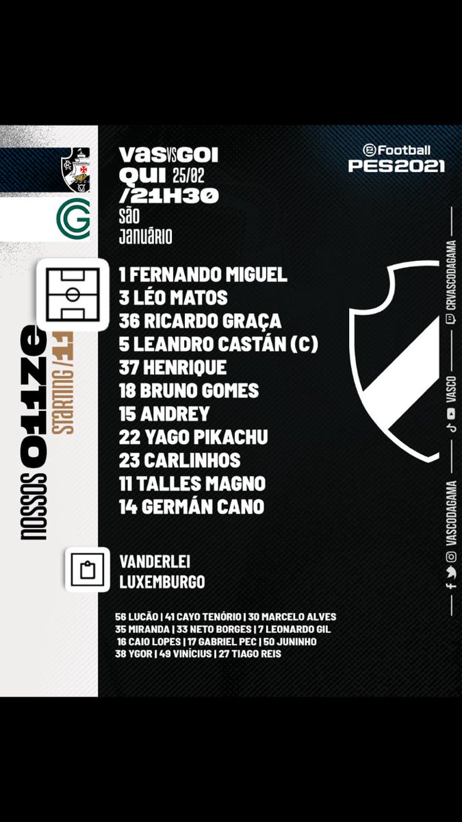 25/02/21 - Confira desfalques e pendurados de Vasco e Goiás