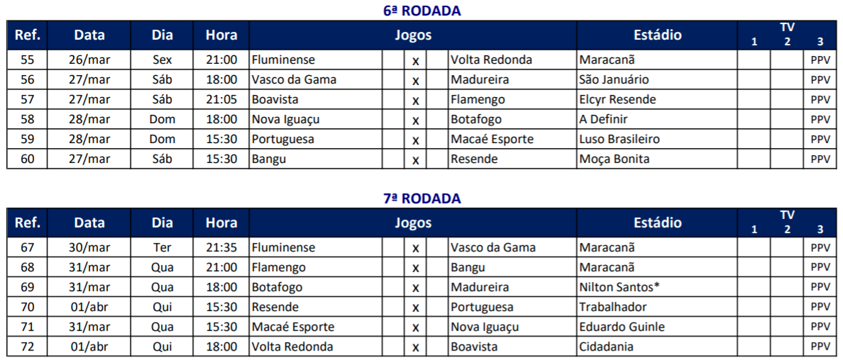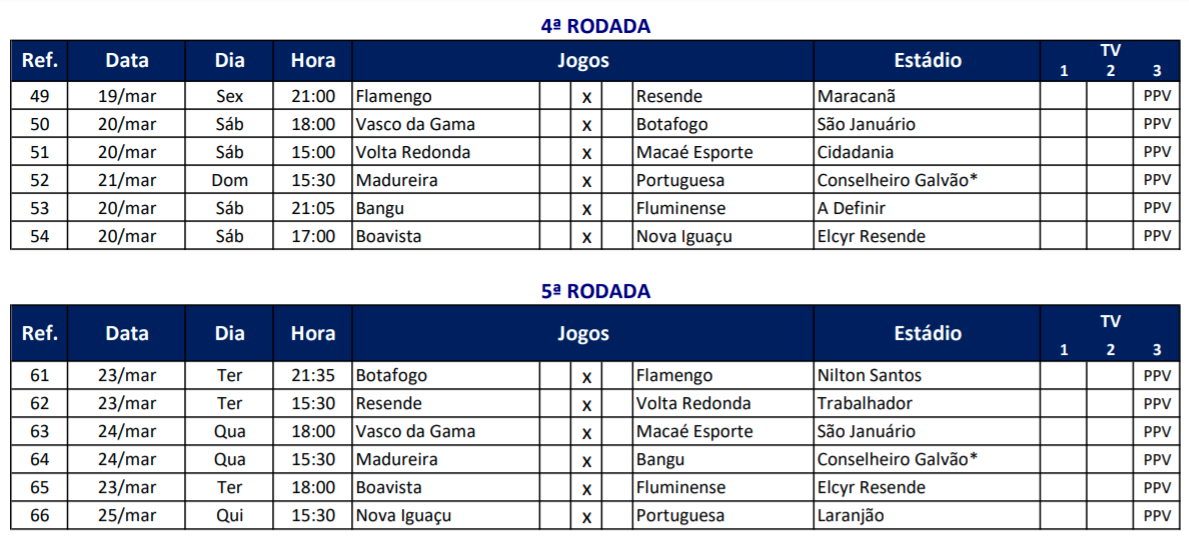 FFERJ detalha rodadas 4 a 7 da Taça Guanabara; confira os jogos do Vasco