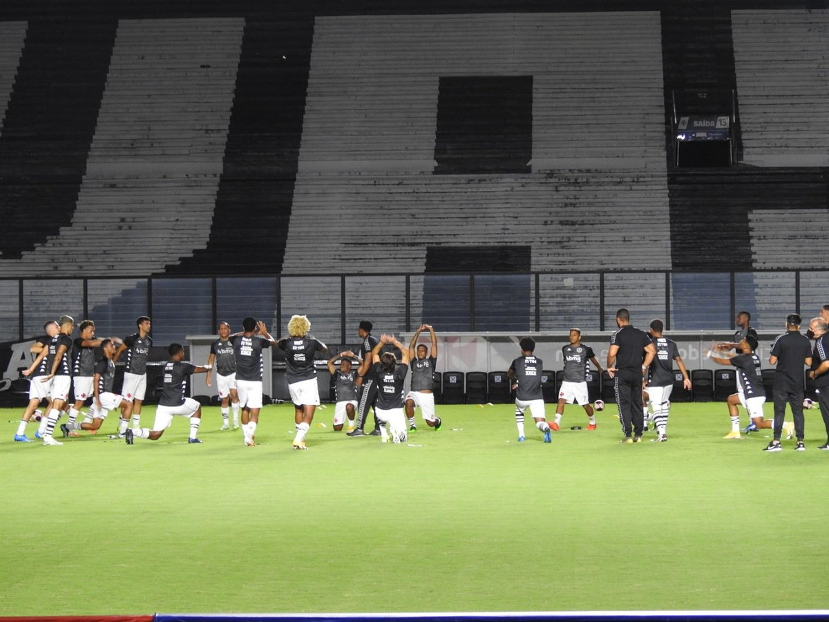 Jogadores do Vasco se aquecem no gramado de São Januário; veja foto