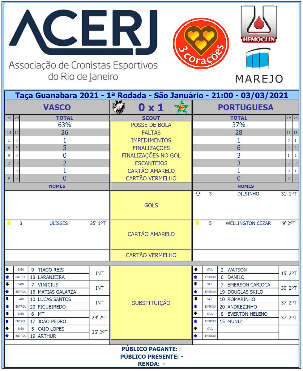 Fonte: Gazeta Esportiva (texto, ficha), Youtube oficial do Campeonato Estadual (vídeo), ge (fotos), Site oficial do Vasco (fotos), Twitter Acerj (estatísticas), R7 (fotos), Instagram oficial da Portuguesa (fotos), UOL (fotos), Instagram do jogador Figueiredo (fotos)