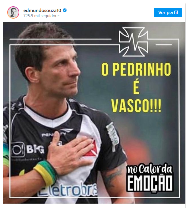 Edmundo pediu respeito e publicou uma imagem com Pedrinho com a camisa do Vasco e a frase "Pedrinho é Vasco".