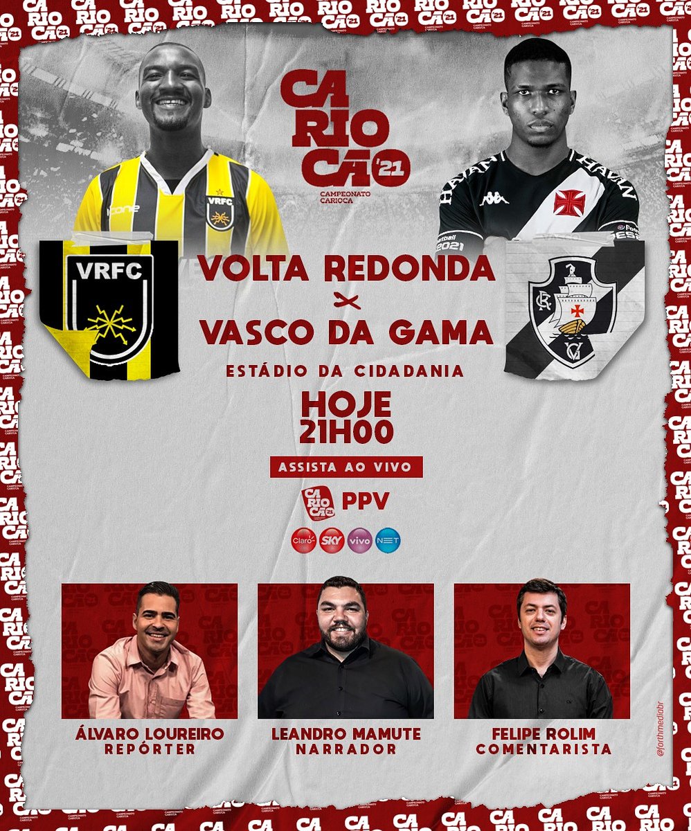 Hoje narro Volta Redonda x Vasco, a partir de 20h05, direto do Estádio Raulino de Oliveira. To nessa com Rolim e Álvaro Loureiro.