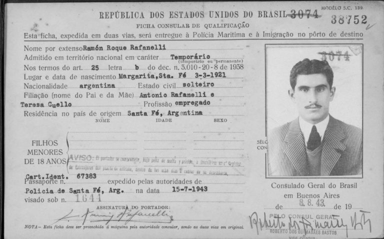 Veja documento de imigração do argentino Rafanelli, do Expresso da Vitória, que estaria completando 100 anos