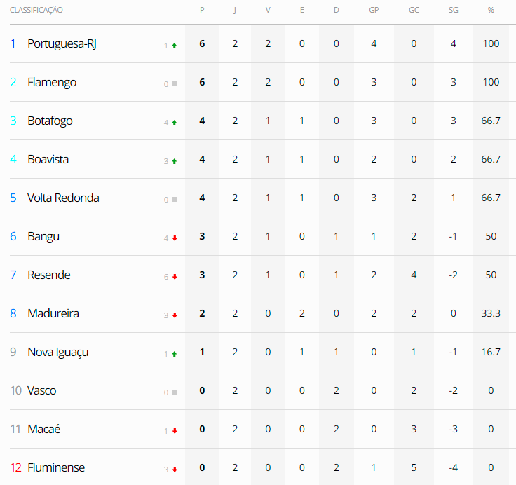 Os 4 primeiros colocados da Taça Guanabara se classificam para a semifinal do Estadual.