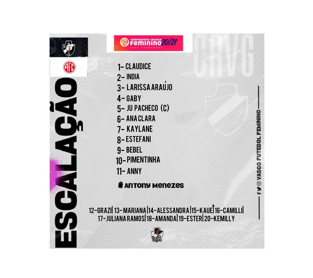 06/03/21 - Feminino: Confira a escalação do Vasco para o jogo contra o Botafogo
