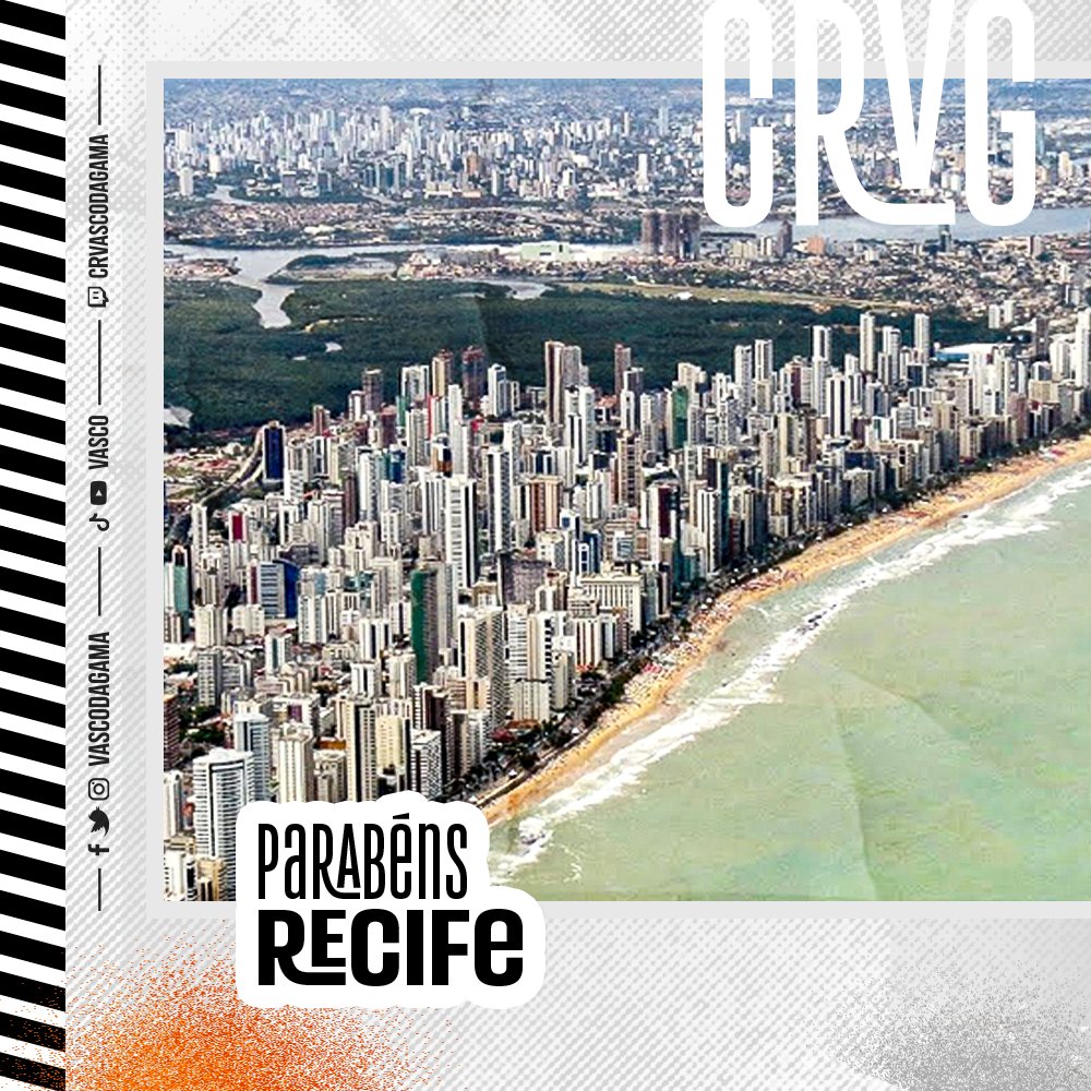 Vasco homenageia Recife: 'Obrigado por Ademir, pelo Reizinho Juninho Pernambucano e tantos outros craques e parabéns pelos seus 484 anos'